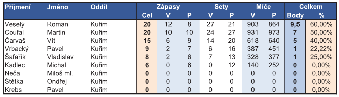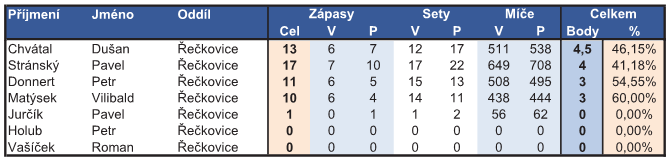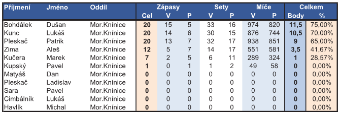 Na tomto místě naleznete statistiky hráčů v jednotlivých oddílech podle úspěšnosti .