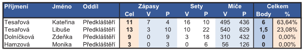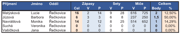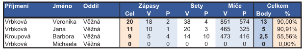 - Závěrečná staitistika úspěšnosti hráček