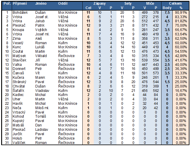 - Závěrečná staitistika úspěšnosti hráčů