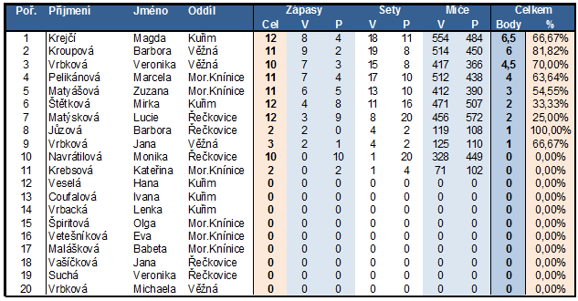 - Závěrečná staitistika úspěšnosti hráček