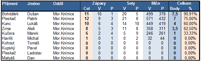 Na tomto místě naleznete statistiky hráčů v jednotlivých oddílech podle úspěšnosti .