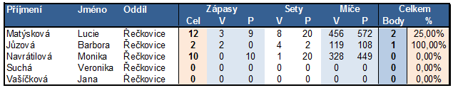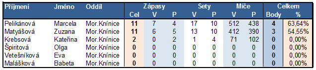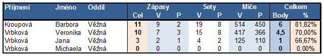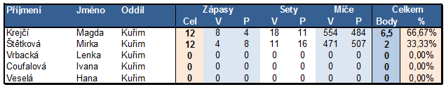 - Závěrečná staitistika úspěšnosti hráček