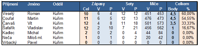 - Závěrečná staitistika úspěšnosti hráčů